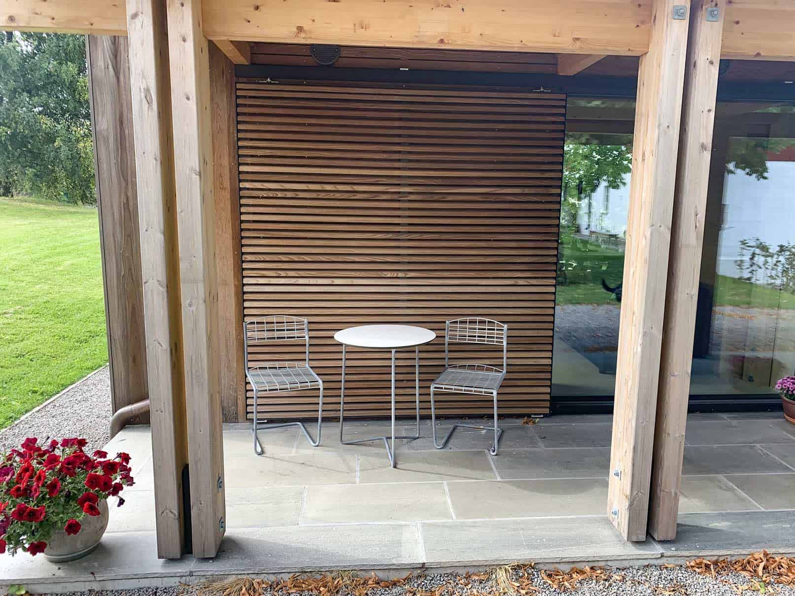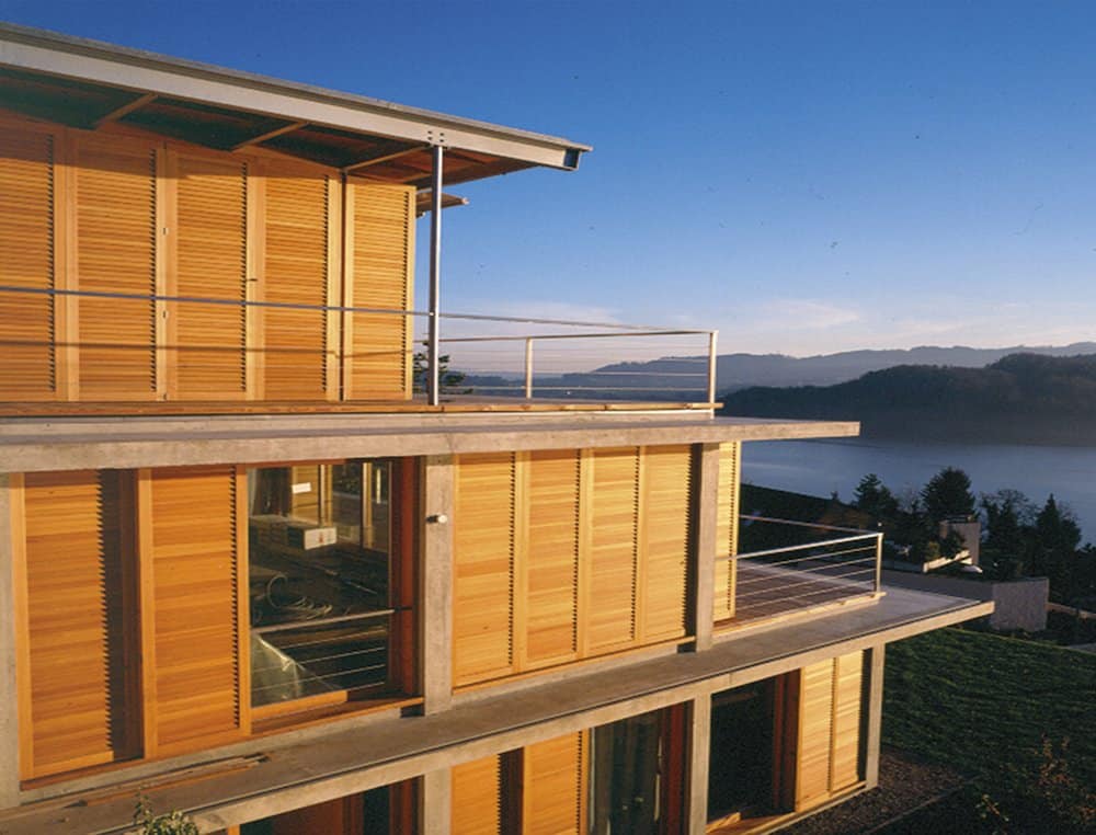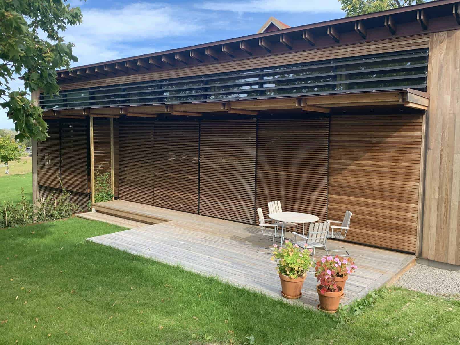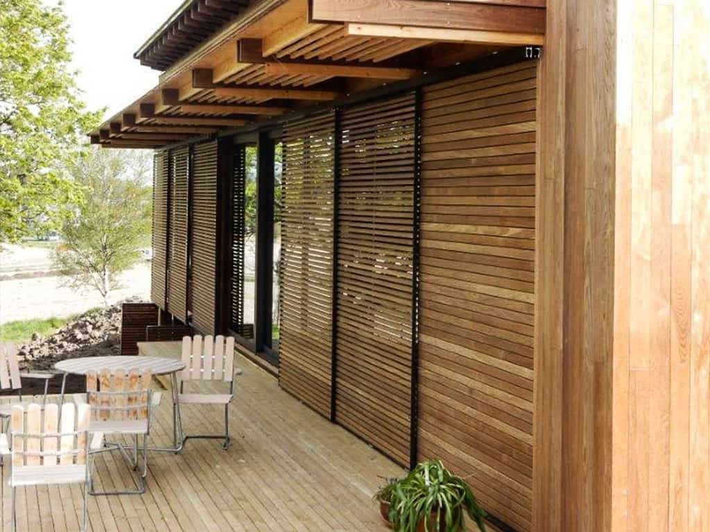 Skodder som skyves parallelt med fasaden eller stables i 90 grader ved siden av vinduet er nå kommet inn i norsk arkitektur, etter å ha vært brukt i en årrekke sydover i Europa.